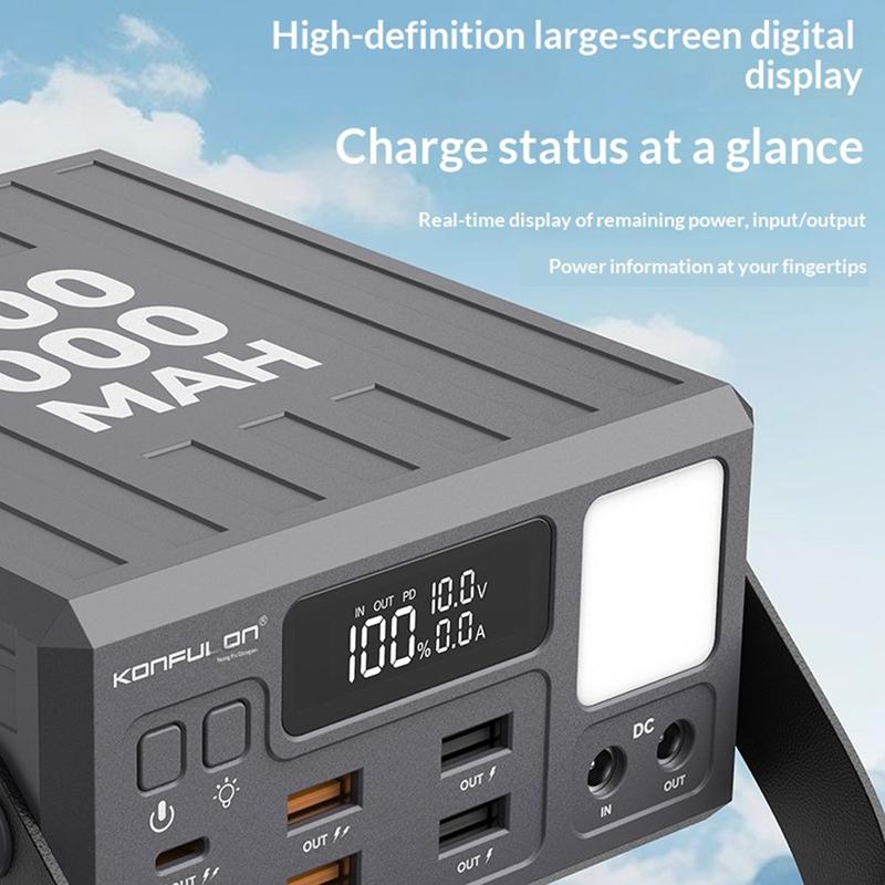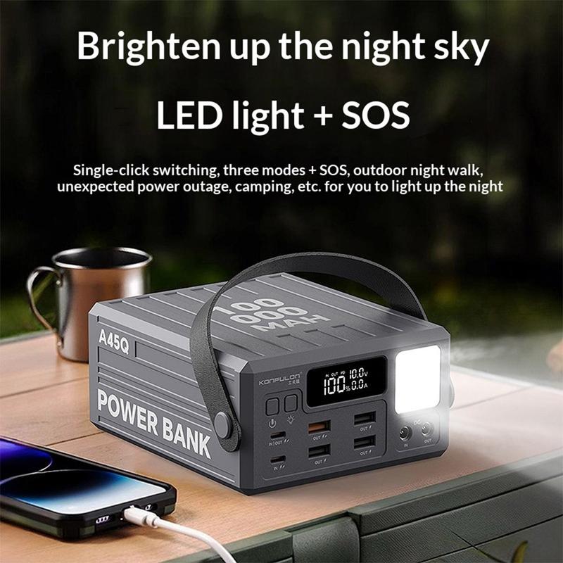 Alimenta más dispositivos durante más tiempo con el cargador portátil Konfulon A45Q de 100000mAh. Diseñado para viajes, actividades al aire libre, acampadas y como fuente de energía de reserva en casa, este cargador de alta capacidad ofrece un almacenamiento de energía fiable con 7 puertos de salida para cargar cómodamente varios dispositivos a la vez.