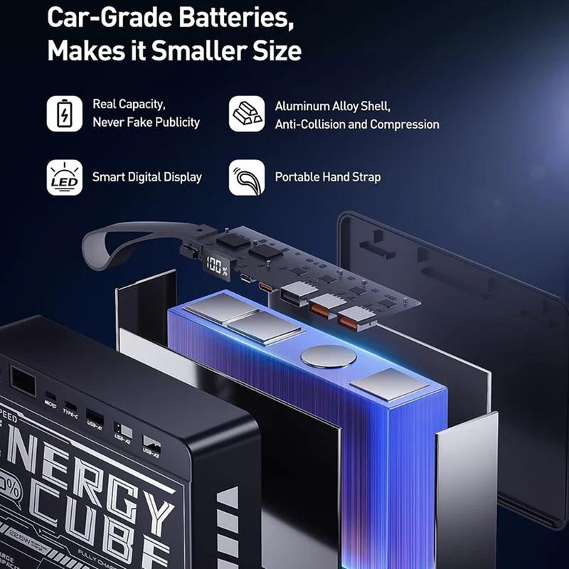 - Diseño de cubo mecha: inspirado en la estética futurista de los cubos de energía, este cargador destaca por su aspecto robusto y atrevido, al tiempo que mantiene una portabilidad práctica.