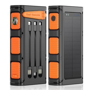 Batería externa solar con manivela de 30000mAh: cargador portátil para exteriores con carga rápida PD de 20 W, linterna, alarma SOS, brújula y cables integrados