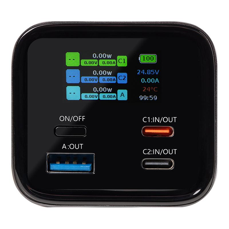 Con 2 puertos USB-C y 1 puerto USB-A, ofrece una carga flexible para múltiples dispositivos en una resistente carcasa de aleación de aluminio. La pantalla TFT integrada muestra el nivel de batería, el estado de carga y la potencia de entrada o salida actual, para que siempre tengas una visión general clara. Su diseño duradero de inspiración táctica y su gran reserva de energía lo convierten en una opción práctica para los usuarios que necesitan una carga fiable lejos de una toma de corriente.