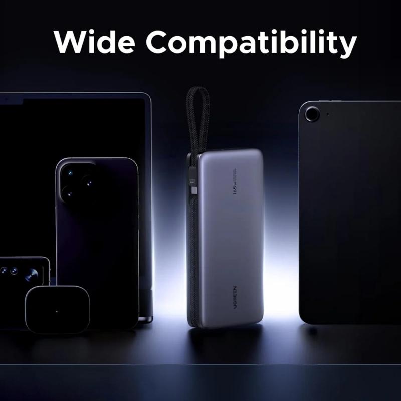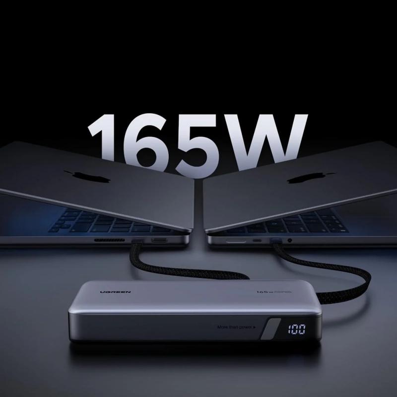 El Ugreen PB552 es un cargador portátil de alto rendimiento diseñado para usuarios intensivos que necesitan una gran potencia lejos de la toma de corriente. Con una capacidad de 25 000 mAh y una potencia total de hasta 165W, puede cargar ordenadores portátiles, tabletas, teléfonos inteligentes y accesorios de manera eficiente durante los viajes, el trabajo a distancia, las reuniones y las largas jornadas en movimiento. Dos cables USB-C integrados mantienen tu equipo ordenado y listo para usar, y la capacidad de cargar hasta cuatro dispositivos a la vez lo convierte en un centro de carga todo en uno fiable que puedes llevar contigo.