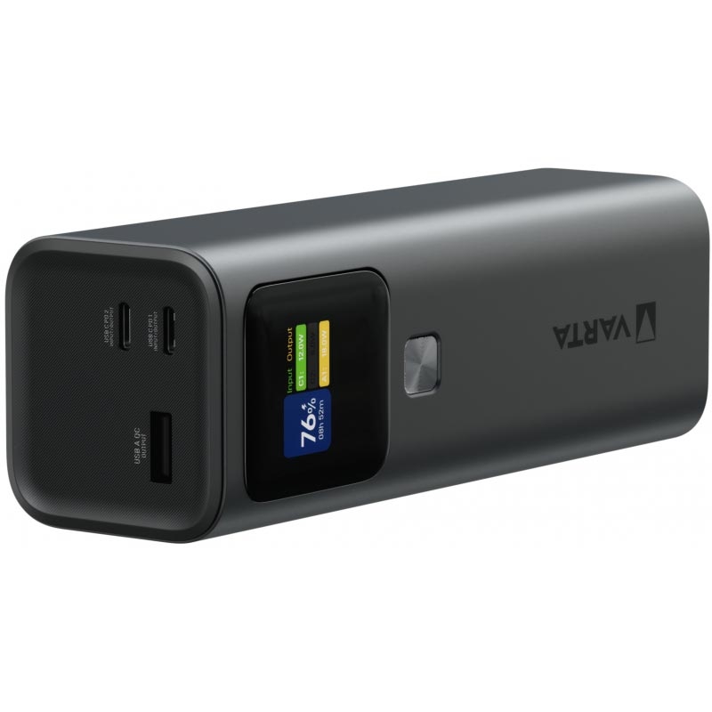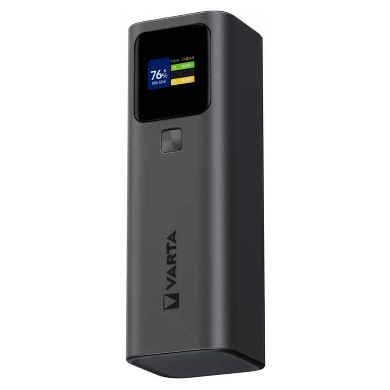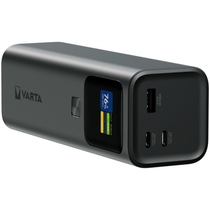 El powerbank de alta velocidad Varta de 27000mAh es una solución de alimentación portátil de alto rendimiento diseñada para usuarios que necesitan una gran capacidad de carga cuando están fuera de casa. Con una potencia de salida de hasta 140W, puede alimentar smartphones, tabletas e incluso portátiles exigentes a toda velocidad. Gracias a su gran capacidad, su rápida recarga y su pantalla LCD inteligente, es ideal para viajar, trabajar y para un uso prolongado lejos de una toma de corriente.
