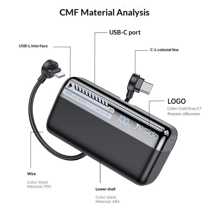 Batería externa Yesido YP99 de 10000mAh con carga rápida de 22,5 W, cable USB-C a Lightning integrado y pantalla digital