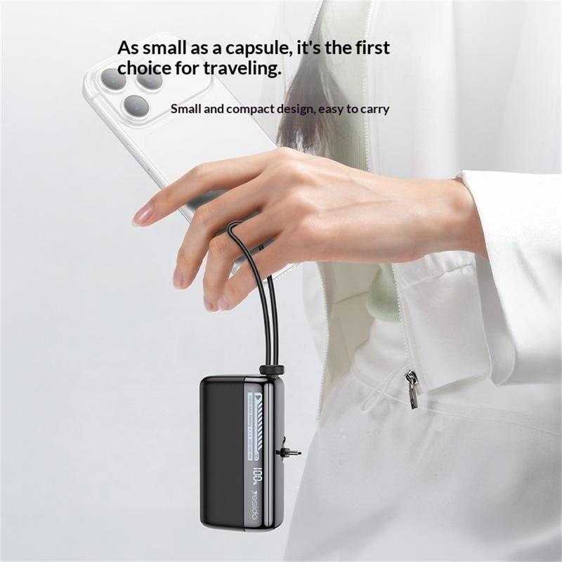 El cargador portátil YESIDO YP99 es un práctico dispositivo diseñado para una carga rápida y cómoda en casa, en el trabajo o durante los viajes. Con una capacidad de batería de 10000mAh, un diseño compacto tipo cápsula y un cable USB-C a Lightning integrado, ofrece una solución de carga sencilla y todo en uno para los smartphones modernos y otros dispositivos compatibles. Su tamaño portátil permite llevarlo fácilmente en un bolso, en el bolsillo o en el equipaje de viaje diario.