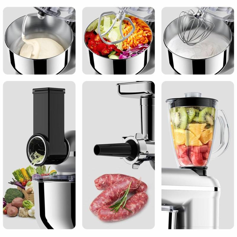- Versatilidad 5 en 1 - Funciona como batidora, amasadora, batidora, picadora y exprimidor, sustituyendo múltiples utensilios de cocina en un diseño inteligente.