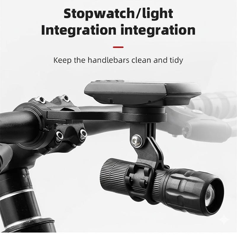 - Diseño 2 en 1 que combina soporte para ciclocomputador y soporte para luz en una sola unidad