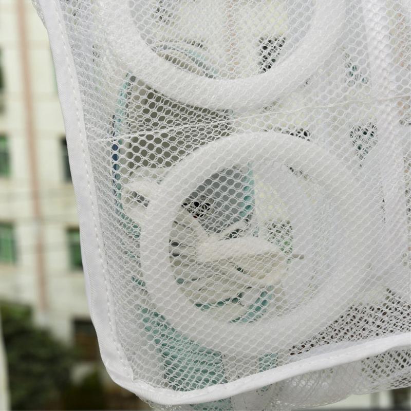 Esta bolsa de malla para zapatos tiene 2 asas para colgarla, lo que significa que puedes colgarla donde quieras