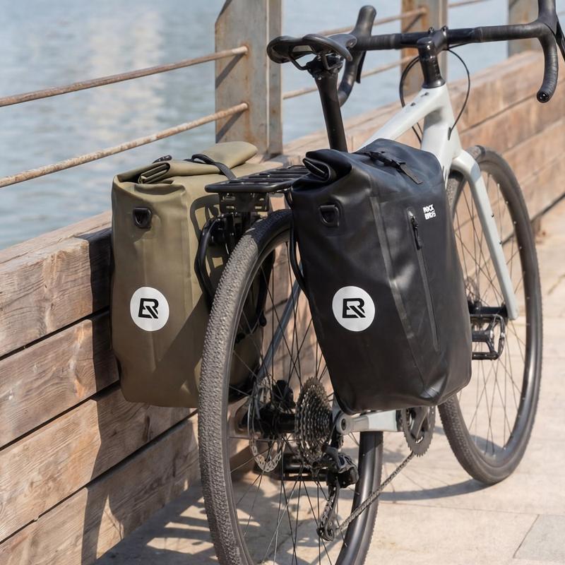 Bolsa trasera impermeable para bicicleta Rockbros AS-166 de 20litros: alforja convertible con correa para el hombro, bolsa de ciclismo reflectante con cierre enrollable