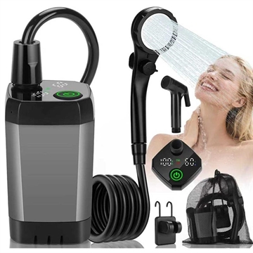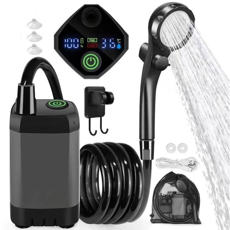 Esta bomba de ducha eléctrica portátil está diseñada para que el aseo al aire libre resulte más fácil, cómodo y flexible, vayas donde vayas. Con una batería integrada de 6000mAh, protección impermeable IPX7 y una pantalla digital inteligente, es una opción práctica para acampadas, viajes en autocaravana, escapadas a la playa, senderismo, el aseo de mascotas y la limpieza al aire libre. Su diseño inalámbrico y su completo kit de accesorios te permiten disfrutar de una ducha más cómoda sin depender de una fuente de agua fija ni de una toma de corriente.