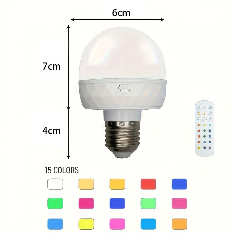 Esta bombilla recargable RGB combina portabilidad, montaje flexible, amplias opciones de color y batería de larga duración, lo que la hace perfecta para iluminación ambiental, uso en la mesilla de noche, viajes, acampadas e iluminación de emergencia sin cableado.