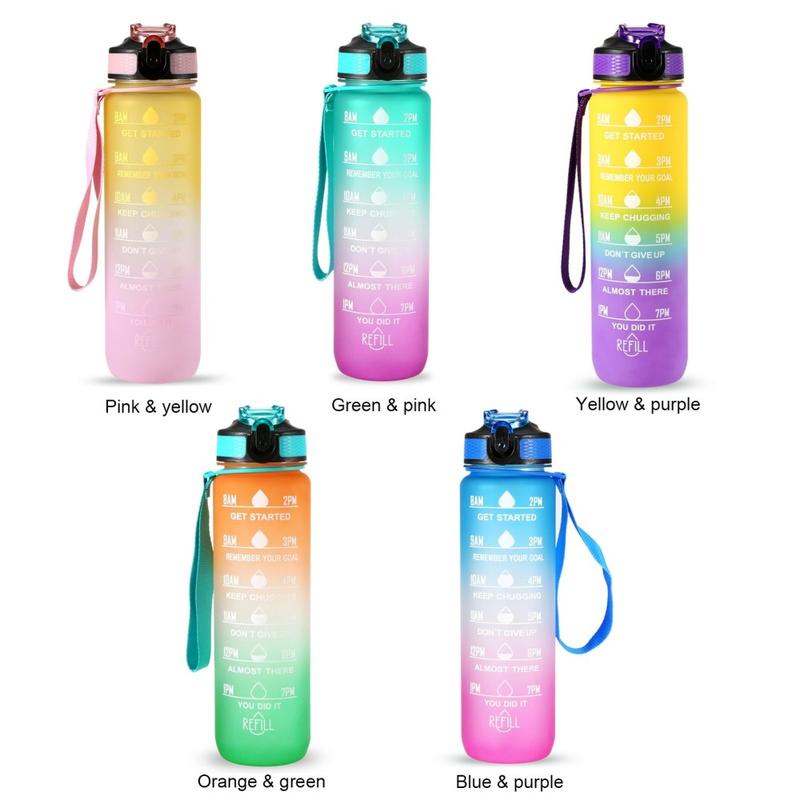 Esta botella de agua de 1L está diseñada con un marcador de tiempo y citas inspiradoras, que le ayudarán a mantenerse motivado para beber suficiente agua durante todo el día. Perfecto para entrenamientos, correr, senderismo, ciclismo, ciclismo, camping, Yoga, o cualquier otro deporte en casa, el gimnasio, la oficina o al aire libre.
