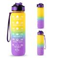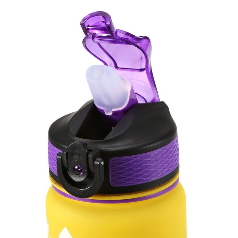 Botella de agua deportiva de 1L con marcador de tiempo Jarra de agua Hervidor de agua a prueba de fugas para la oficina Escuela Camping (libre de BPA) - Amarillo/Morado