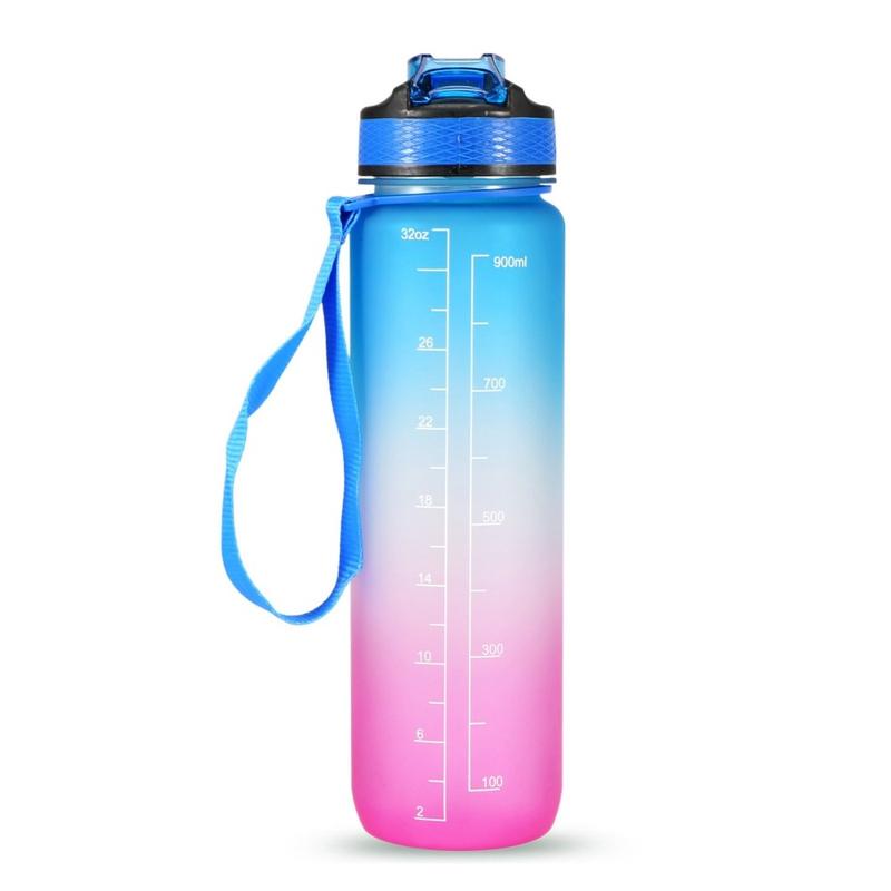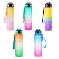 Botella de agua deportiva de 1L con marcador de tiempo Jarra de agua Hervidor de agua a prueba de fugas para la oficina Escuela Camping (libre de BPA) - Azul/Morado