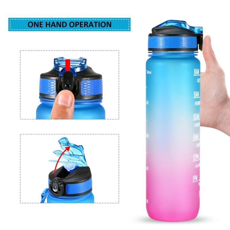 Esta botella de agua de 1L está diseñada con un marcador de tiempo y citas inspiradoras, que le ayudarán a mantenerse motivado para beber suficiente agua durante todo el día. Perfecto para entrenamientos, correr, senderismo, ciclismo, ciclismo, camping, Yoga, o cualquier otro deporte en casa, el gimnasio, la oficina o al aire libre.