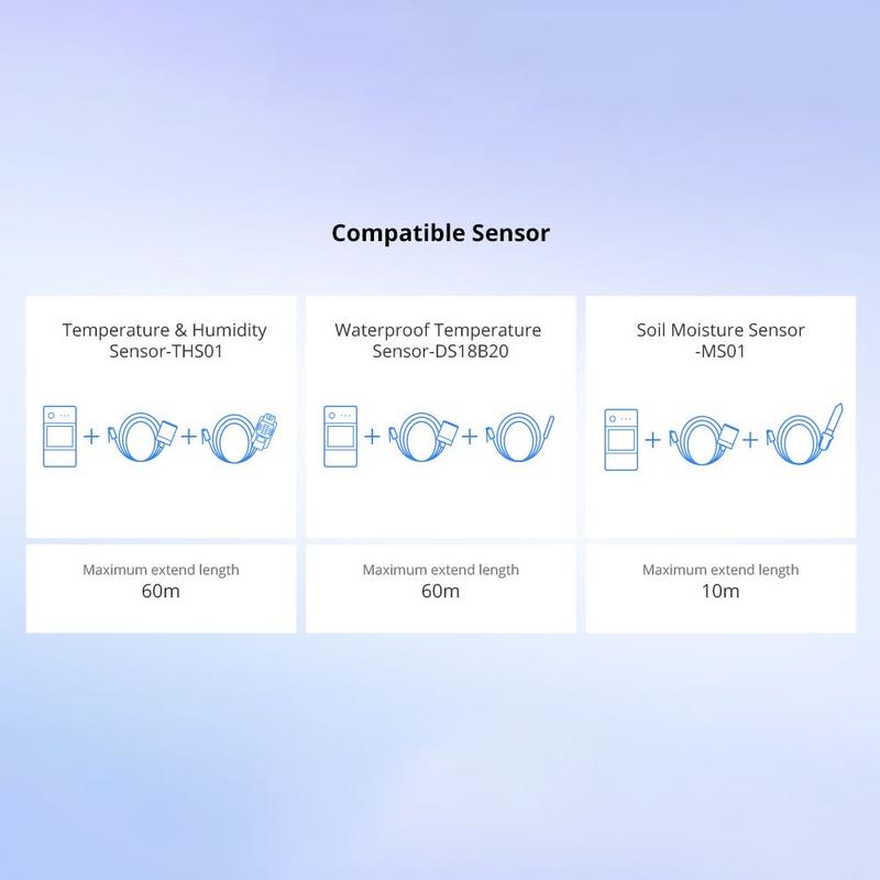 - Funciona con sensores Sonoff RJ11, como THS01 y DS18B20, con conector RJ11