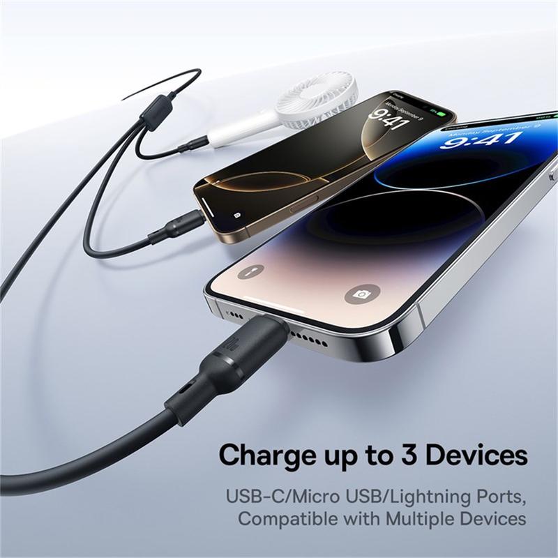 Mejore su experiencia de carga con el cable de carga rápida 3 en 1 Baseus Silky, diseñado para satisfacer las exigencias de los estilos de vida modernos con múltiples dispositivos.