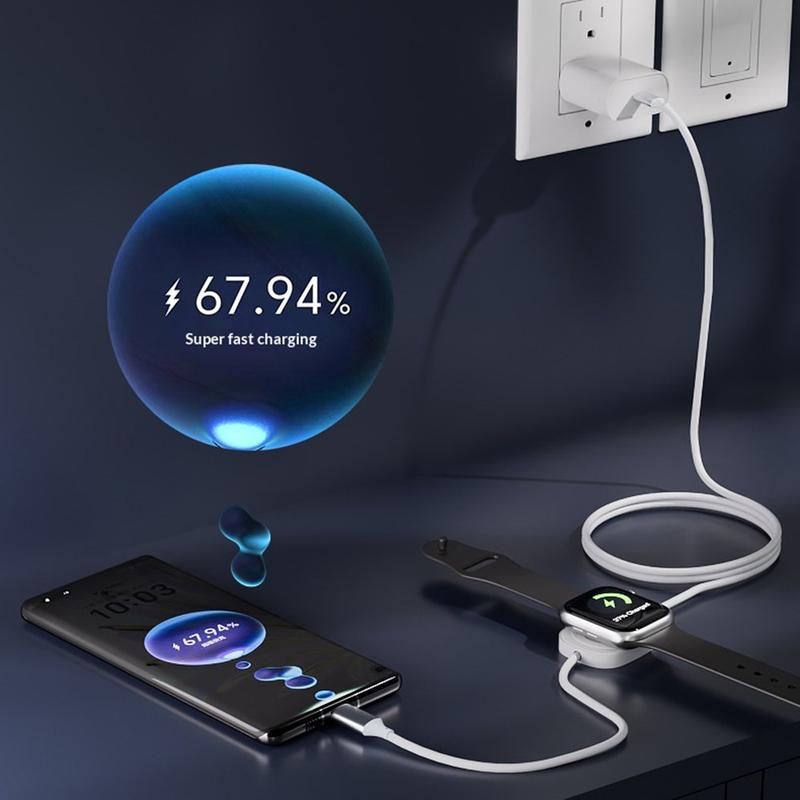 Este cable de carga rápida Type-C 2 en 1 de 1.2m combina una potente carga PD de 100W con un cargador inalámbrico magnético para Apple Watch, ofreciendo una solución cómoda y de alta velocidad tanto para usuarios de smartphones como de smartwatches. Con un núcleo de cobre puro para una salida de potencia estable y una mayor protección de la batería, garantiza una carga eficiente y fiable en todo momento. El fuerte enganche magnético garantiza una colocación segura y una alineación perfecta, lo que facilita la carga. Compatible con los protocolos de carga rápida PD, QC y FCP, este versátil cable es compatible con una amplia variedad de dispositivos de múltiples marcas. Compacto, duradero y fácil de transportar, es la herramienta de carga todo en uno ideal para el hogar, la oficina o los desplazamientos.