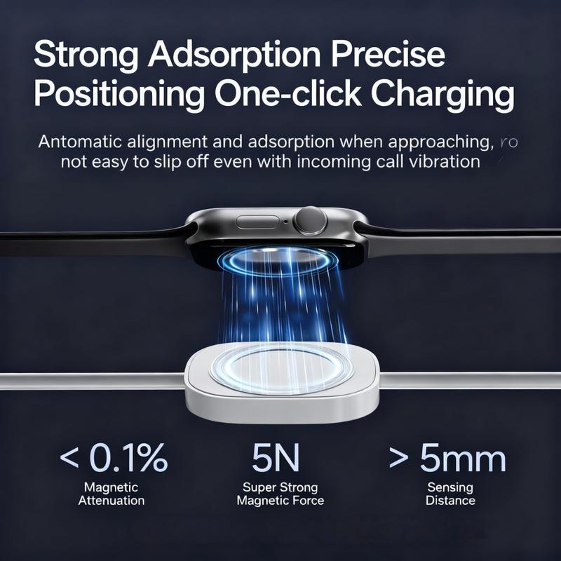 - La almohadilla magnética de carga inalámbrica para Apple Watch garantiza una alineación segura y una carga estable