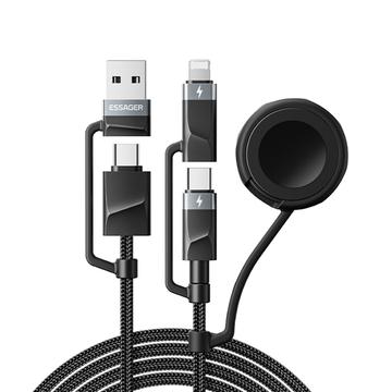 Cable de carga rápida Essager 5 en 1, 1m - USB-C, Lightning, USB-A, Apple Watch - Negro
