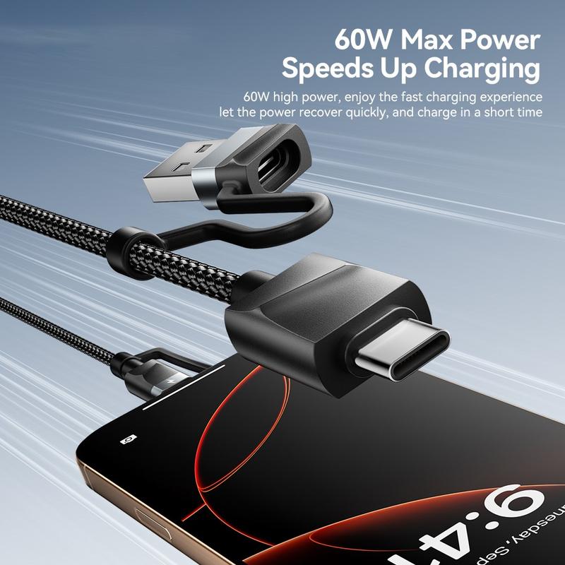 Compatible con una potencia de carga de hasta 60 W, puede alimentar rápidamente dispositivos USB-C compatibles, al tiempo que ofrece una carga fiable para otros dispositivos compatibles. Los conectores de aleación de aluminio duraderos y la estructura trenzada reforzada del cable ayudan a mejorar la flexibilidad y la resistencia al desgaste diario, lo que lo hace ideal para viajes, la oficina y el uso diario. Una cinta adhesiva integrada mantiene el cable perfectamente organizado cuando no se utiliza.