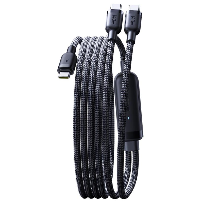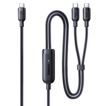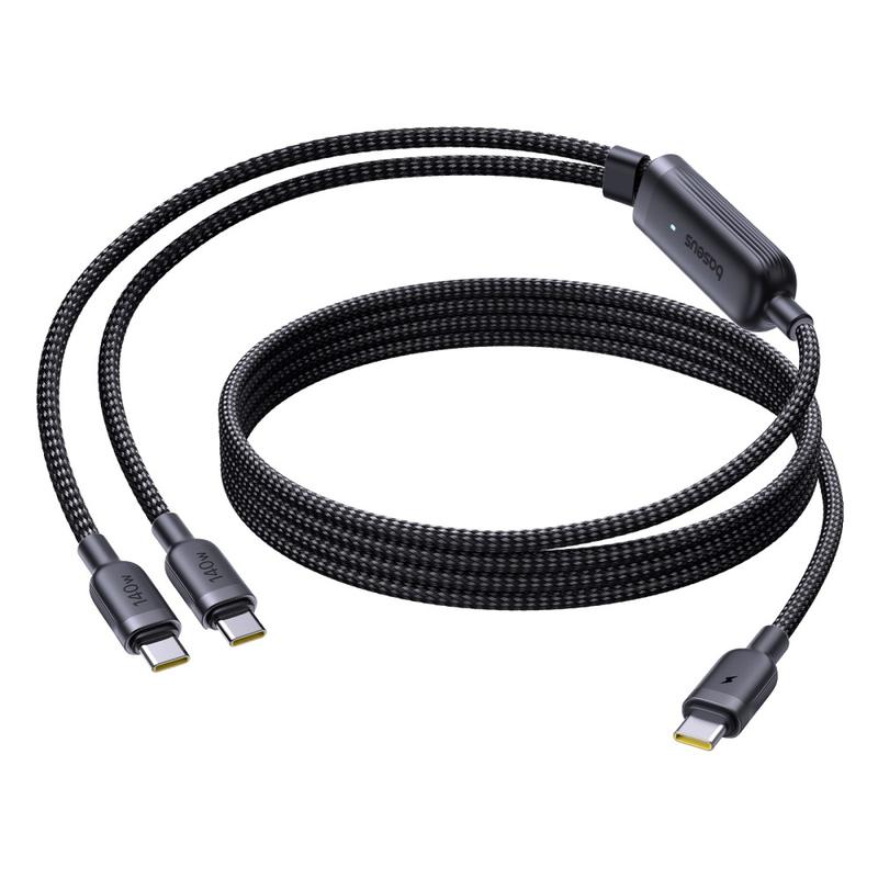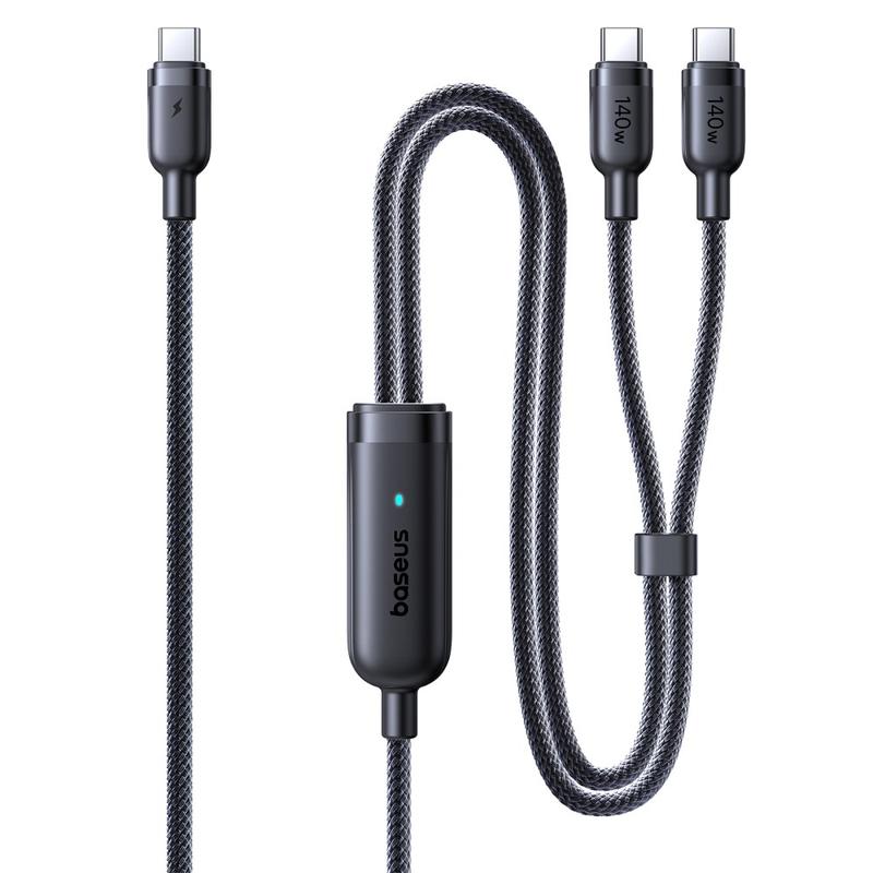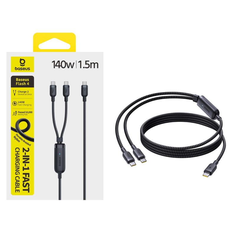 Cable de carga rápida Baseus Flash 4 2 en 1 de USB-C a doble USB-C de 1,5 m - Cable de carga para múltiples dispositivos PD 3.1 de 140 W con organizador de cables