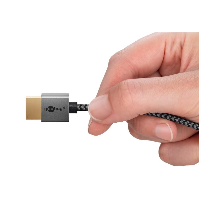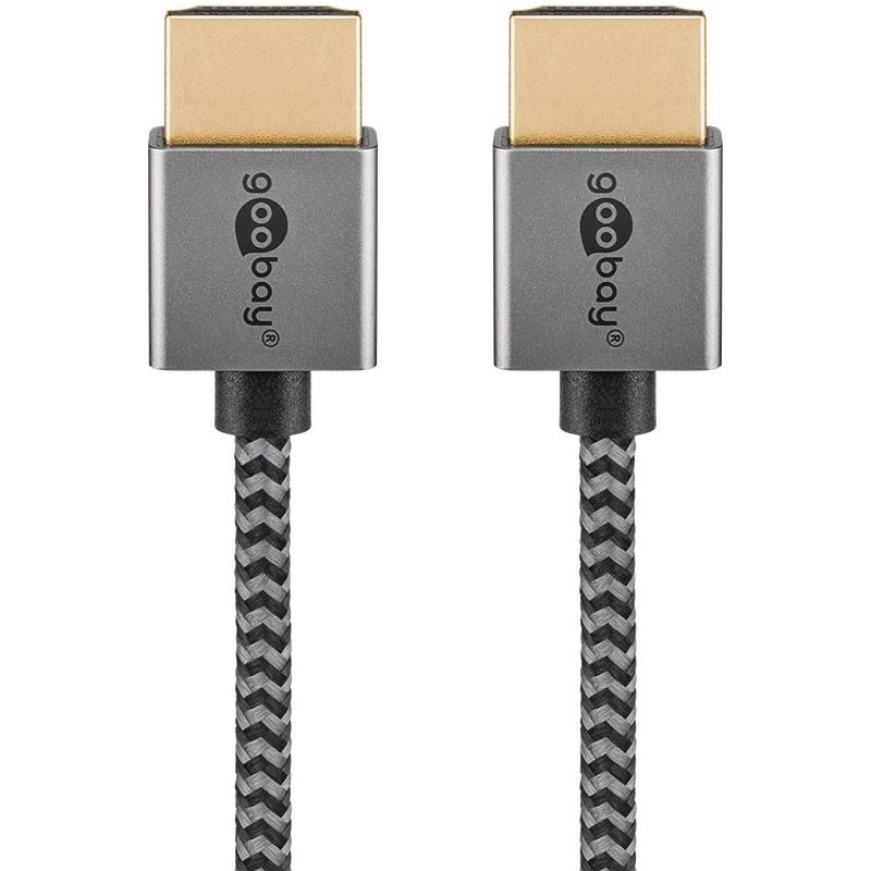 • Goobay Plus Slim Cable HDMI de alta velocidad con Ethernet - Ultra-delgado 4K@60Hz cable HDMI, HDR, ARC / eARC, conectores de metal