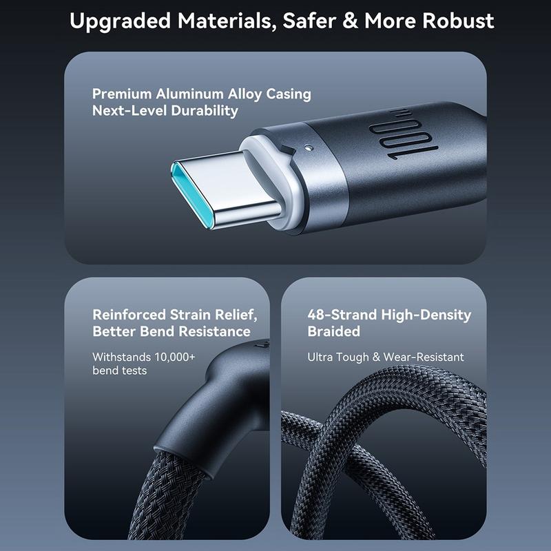 Fabricado con una carcasa de aleación de aluminio y un exterior de nailon trenzado resistente, el cable está diseñado para un uso diario habitual. Ofrece tanto carga rápida como transferencia de datos en una solución fiable, con una construcción robusta diseñada para soportar dobleces, tirones y el desgaste diario.