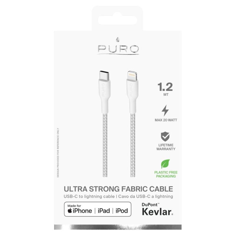Cable USB-C / Lightning ultrarresistente Puro Fabric - 1,2 m, 20 W - Blanco