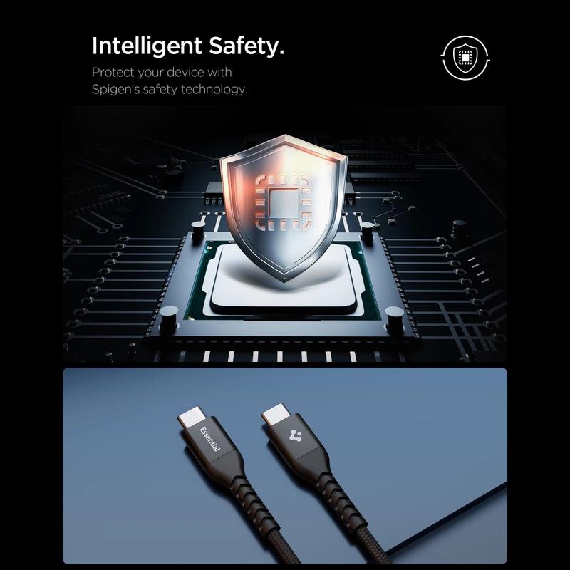 Diseñado para un uso prolongado, el cable utiliza el diseño Dura Bend de Spigen para mejorar la flexibilidad y la resistencia a las flexiones repetidas. Los extremos reforzados ayudan a proteger las zonas más vulnerables del desgaste diario, mientras que el chip E-Marker certificado ayuda a gestionar la energía de forma segura al reconocer el dispositivo conectado y ajustar los parámetros de carga en consecuencia. Esto ayuda a mantener una carga estable y añade protección contra el sobrecalentamiento, la sobrecarga y los cortocircuitos.