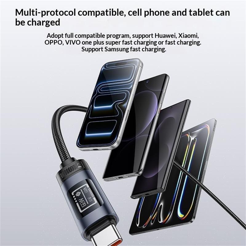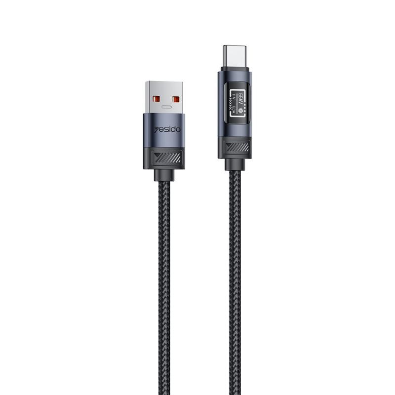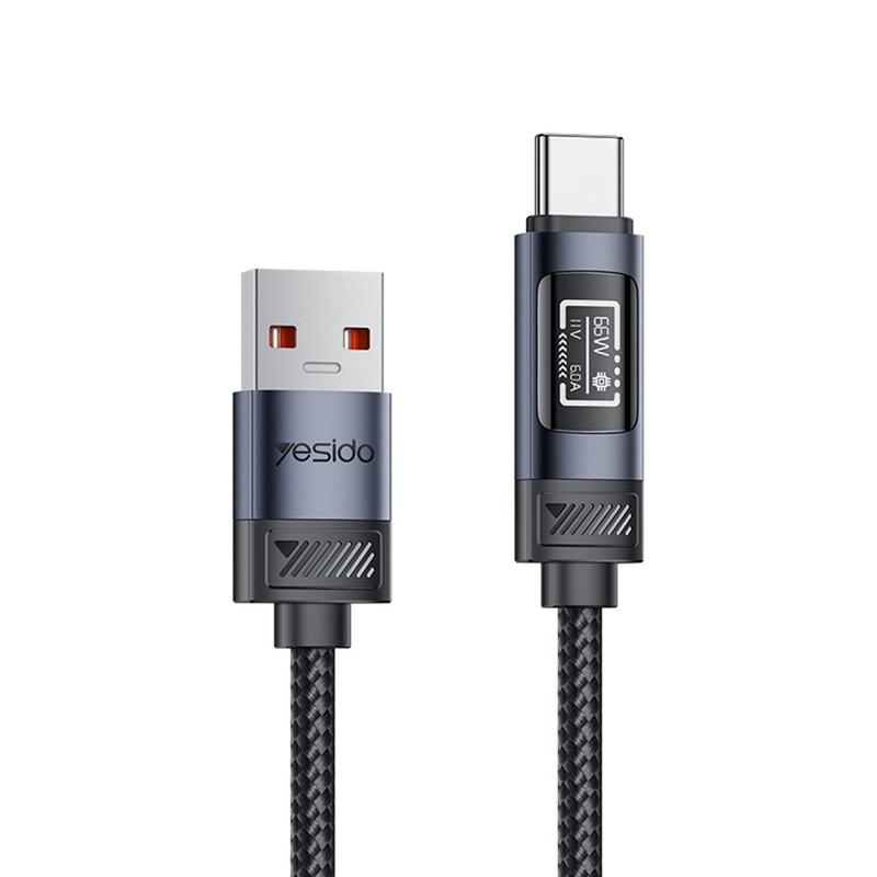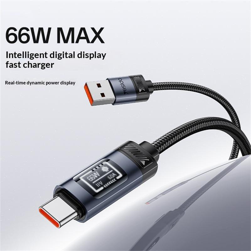 Cable de carga rápida Yesido CA138C de 66W: cable de datos trenzado de nailon de USB-A a USB-C con pantalla digital OLED - 1.2m