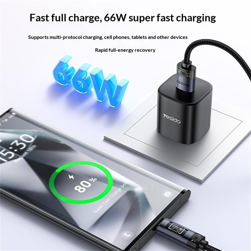 Carga tus dispositivos más rápido mientras controlas el suministro de energía en tiempo real con el cable de carga rápida YESIDO CA138C. Diseñado para una carga de alto rendimiento, este cable de USB-A a USB-C admite una potencia de salida de hasta 66W y cuenta con una pantalla digital OLED integrada que muestra el voltaje, la corriente y la potencia durante la carga. Esto te permite controlar fácilmente el rendimiento de la carga y garantizar un suministro de energía estable a tu dispositivo.