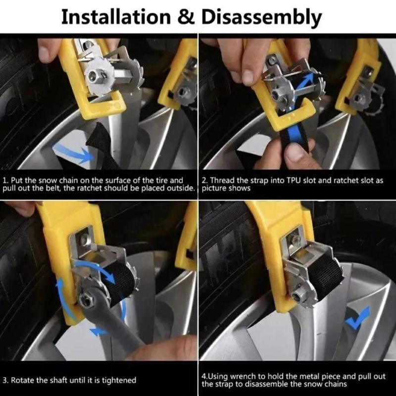 Con hebillas de bloqueo de engranajes y cierre semiinteligente, la instalación es rápida y sin complicaciones. Puede ponerlos o quitarlos en cuestión de minutos sin ayuda profesional, lo que los hace prácticos para situaciones de emergencia en carretera.