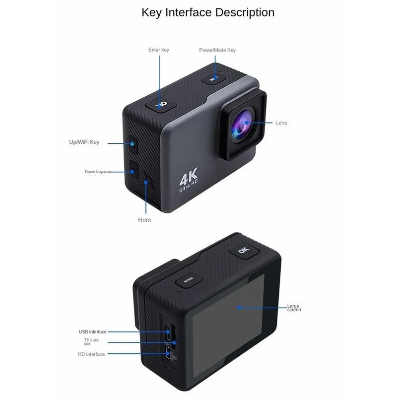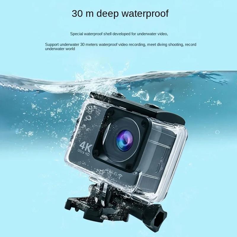 Cámara de acción F300AB-R de 2 pulgadas con WiFi 4K, pantalla táctil y carcasa sumergible hasta 30 m