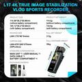 Cámara de acción L17 4K con pantalla táctil de 1.69 pulgadas, lente gran angular de 160 grados con rotación de 180 grados, estabilizador electrónico de imagen de 6 ejes, WiFi, incluye tarjeta de 64GB + lector de tarjetas.