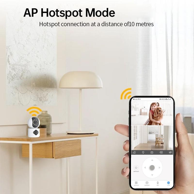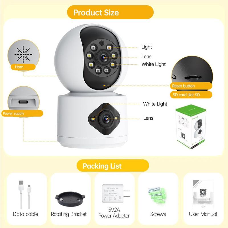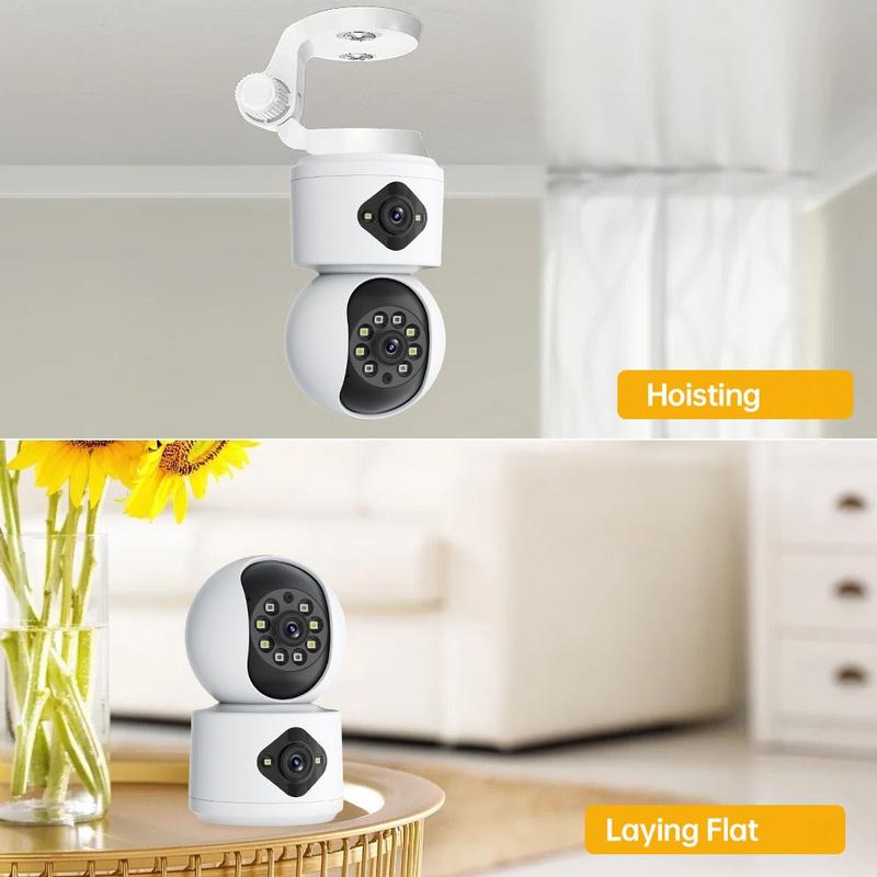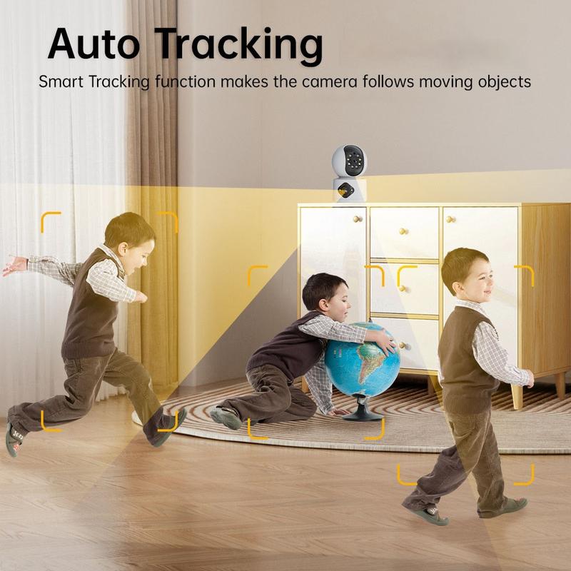 Cámara de seguridad WiFi de doble lente de 4 MP con seguimiento 360, audio bidireccional y visión nocturna