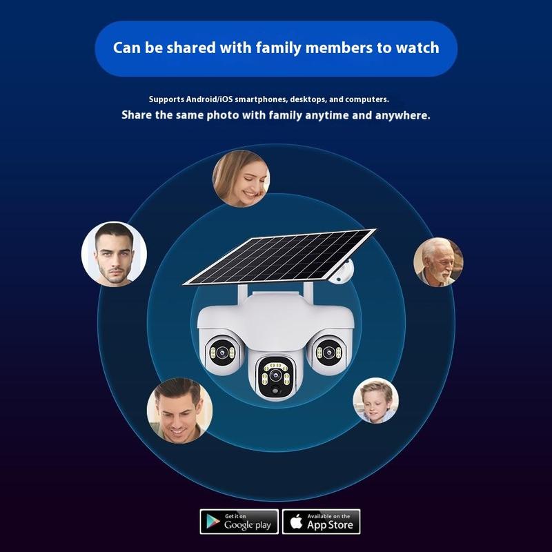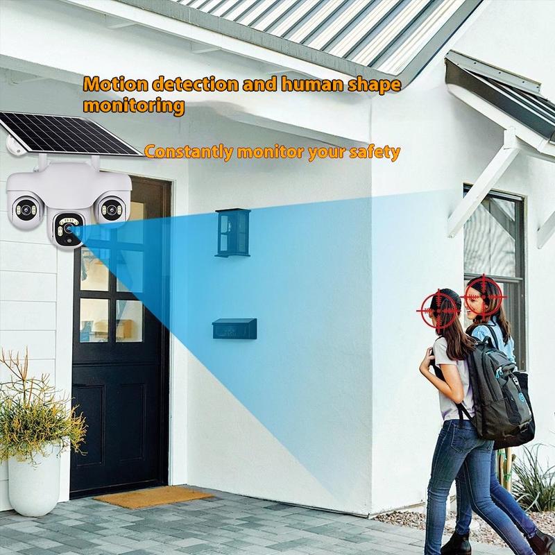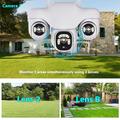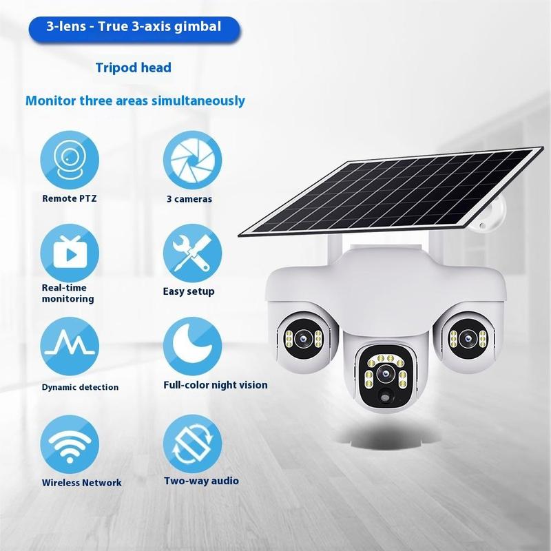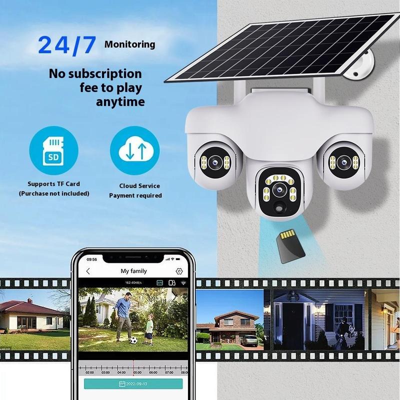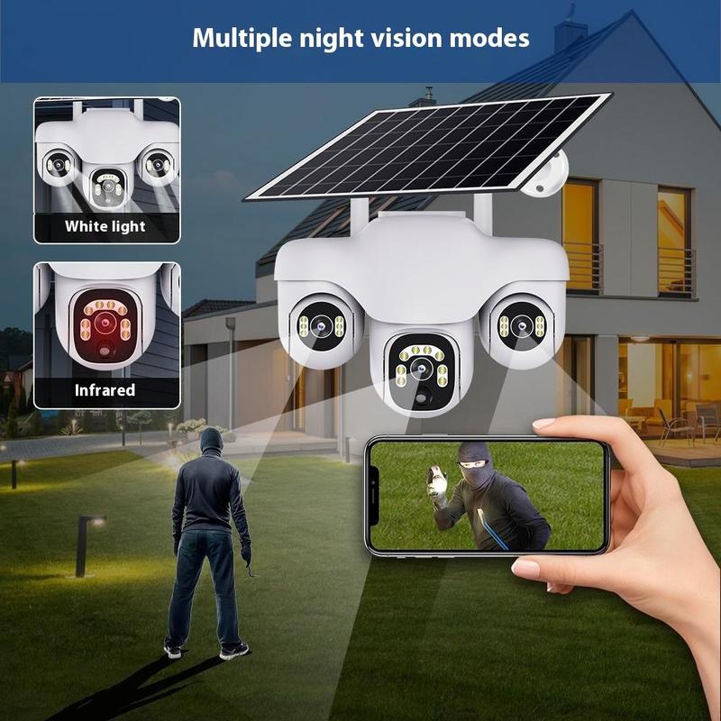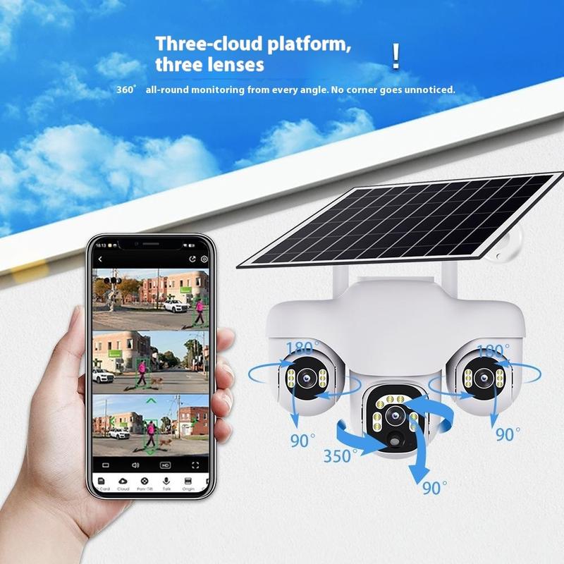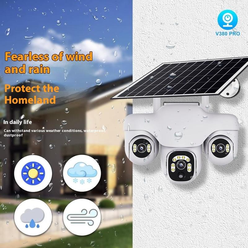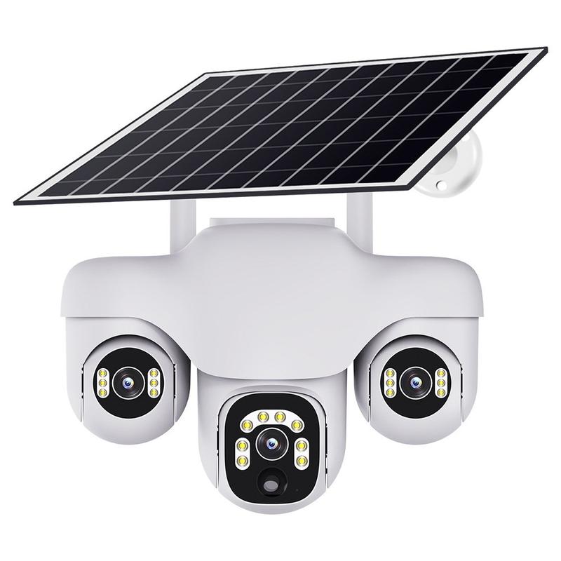 Cámara de seguridad PTZ VTS31 V380 con alimentación solar y triple lente: cámara de vigilancia WiFi para exteriores con detección de movimiento