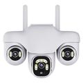 Este modelo combina cobertura panorámica, funciones de detección inteligente y vigilancia nocturna en un diseño preparado para exteriores. Gracias a su disposición de triple lente y a su estructura PTZ giratoria, puede vigilar un área mucho más amplia que muchas cámaras estándar de una sola lente, lo que ayuda a reducir los puntos ciegos alrededor de su propiedad.