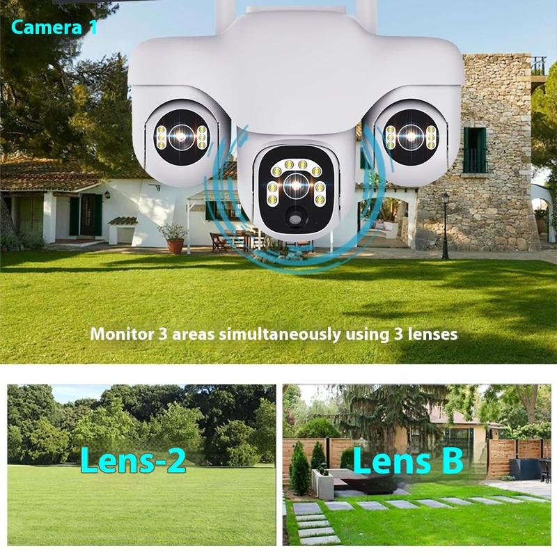 - El diseño de triple lente con 3 lentes de 2 MP proporciona una vigilancia exterior más amplia y una cobertura más completa de la zona.
