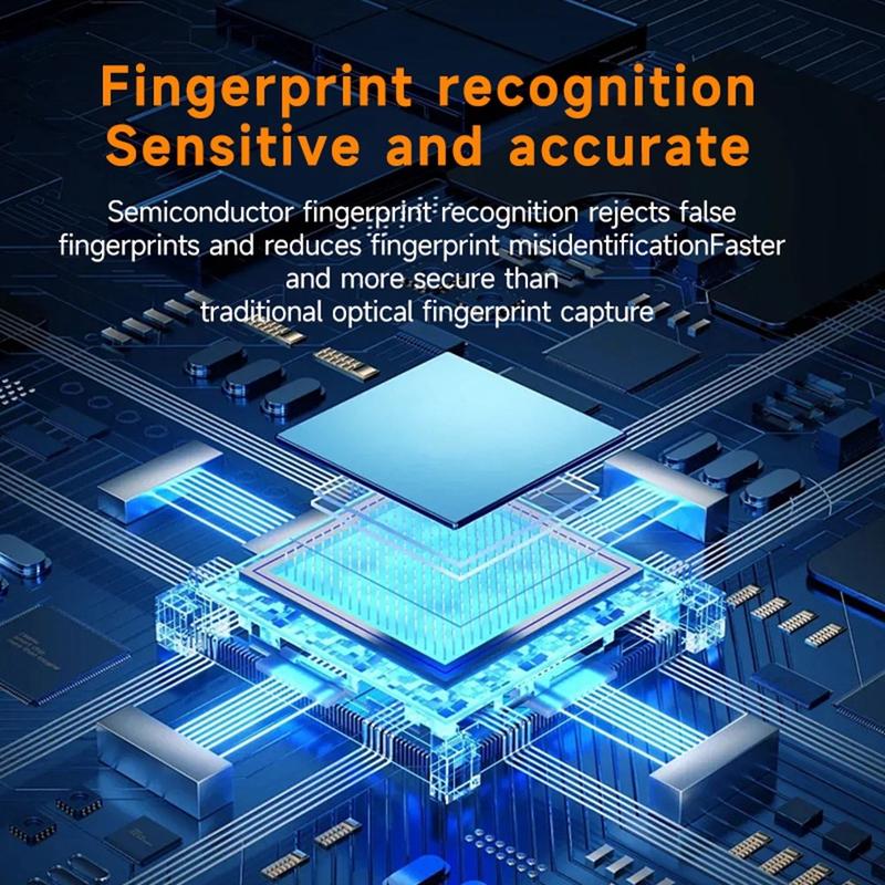 Este candado inteligente utiliza un sensor de huellas dactilares semiconductor capaz de almacenar hasta 20 huellas dactilares. El algoritmo de autoaprendizaje mejora la precisión con el tiempo, garantizando un desbloqueo más rápido y fiable con cada uso.
