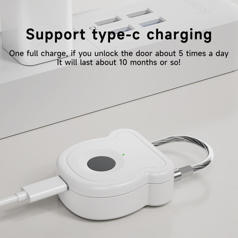 Recargue el candado rápidamente mediante el puerto USB-C, garantizando un tiempo de respuesta rápido y una alimentación sin complicaciones.