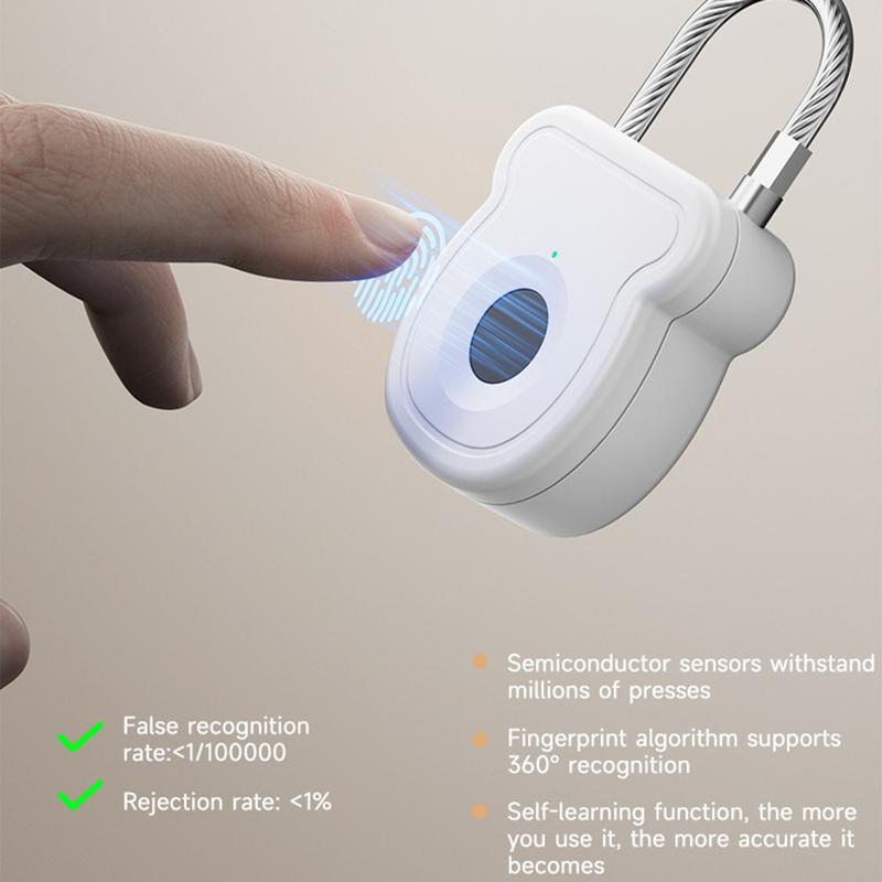 El candado inteligente con huella dactilar ofrece una moderna seguridad biométrica, una construcción antirrobo duradera y una batería de larga duración, todo ello en un diseño compacto y fácil de usar. Ideal para asegurar las pertenencias personales en casa, en el trabajo o mientras viaja.