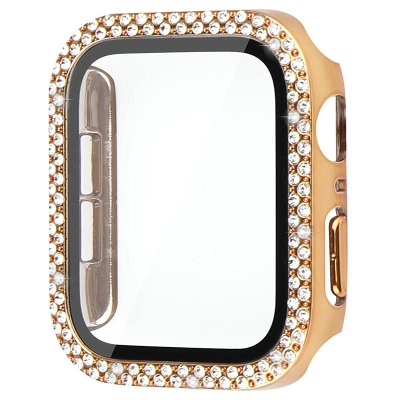 Carcasa Decorativa con Diamantes con Protector de Pantalla para Apple Watch Series 9/8/7 - 41mm - Dorado