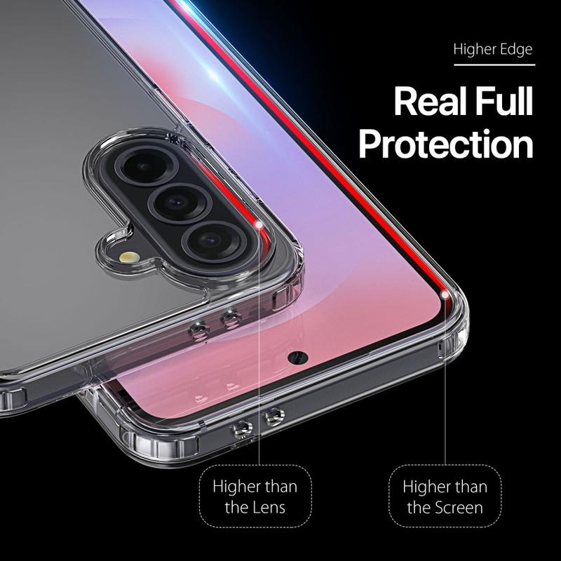 - Bordes más altos alrededor de la pantalla y la lente de la cámara para una protección completa