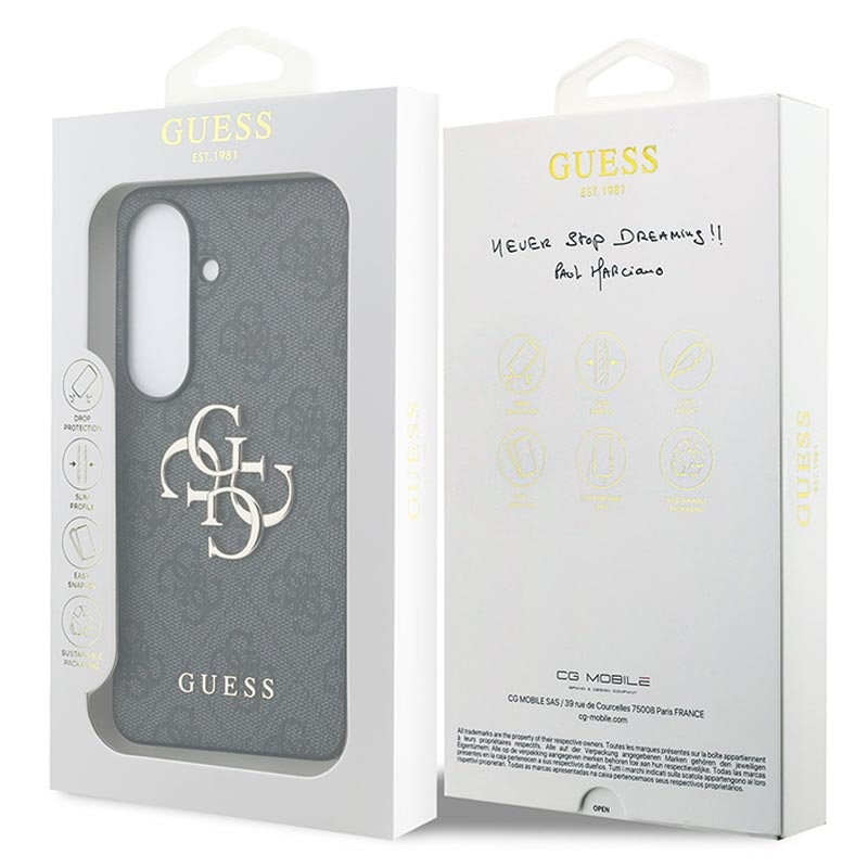 Esta funda brinda un gran estilo y protección contra rayones y daños diarios que tu Samsung Galaxy S26+ necesita en todo momento por su funcionalidad y su forma física. El diseño de la funda Guess 4G Big Metal Logo presenta un logotipo de Guess impreso sobre una textura brillante colocada en la parte posterior de la funda.