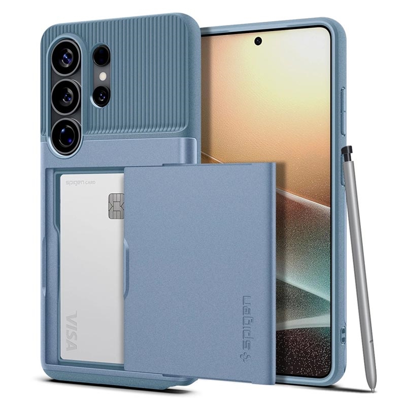 Este estuche Spigen Slim Armor CS ofrece la máxima protección para su Samsung Galaxy S26 Ultra contra golpes porque cuenta con los estándares de protección contra caídas de grado militar MIL-STD 810G-516.6 y tecnología Air Cushion en todos los rincones. La funda Spigen Slim Armor CS también le permite almacenar hasta dos tarjetas de crédito gracias a su ranura deslizable que se encuentra en la parte posterior de la funda.