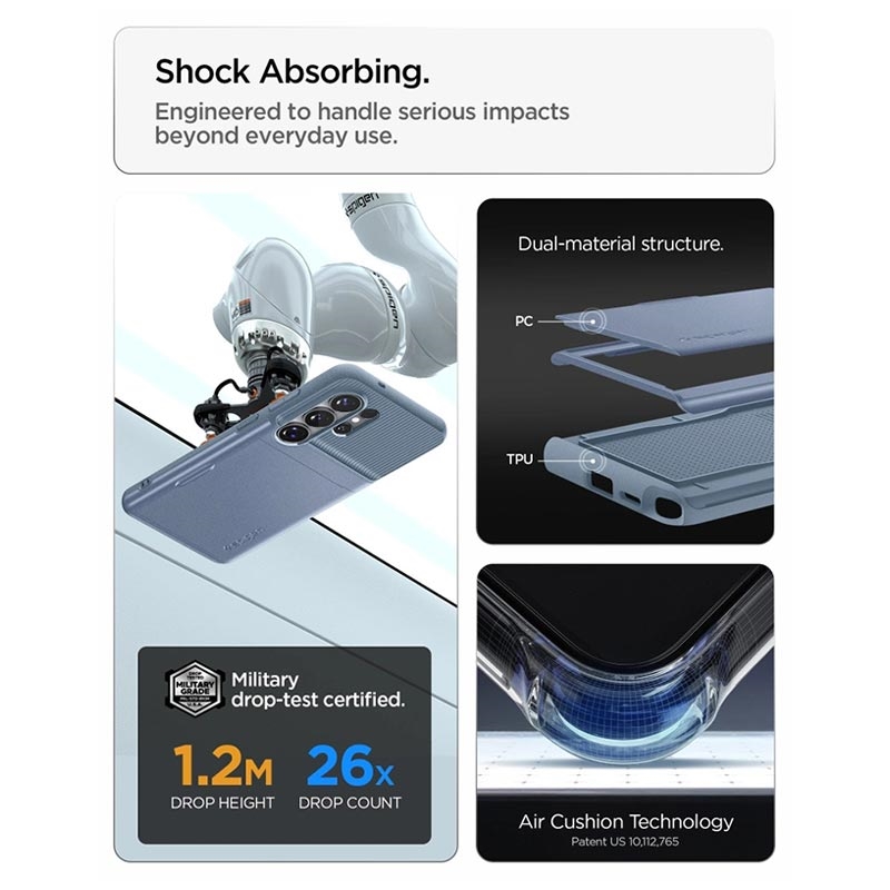 - El estuche Spigen Slim Armor CS está probado contra caídas y tiene protección contra caídas de grado militar MIL-STD 810G-516.6