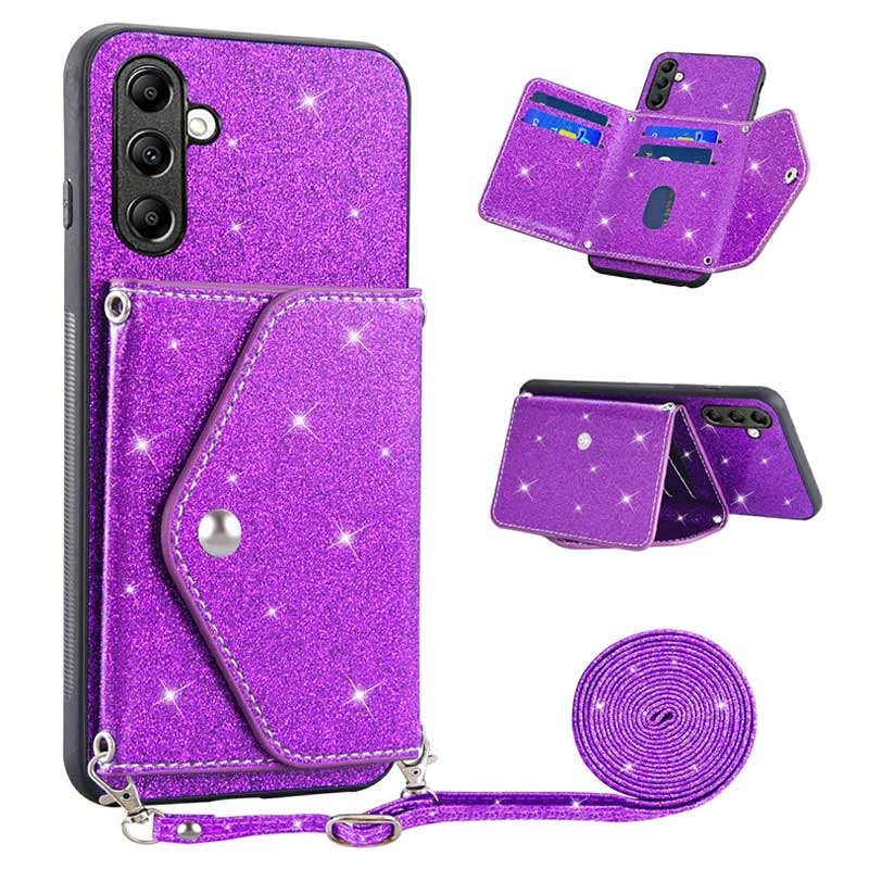 El estuche de primera calidad de la serie Stardust es la elección correcta para proteger su Samsung Galaxy A14 de cualquier daño potencial. Tiene un portatarjetas en la parte posterior con un botón a presión que es excelente para guardar sus tarjetas esenciales y mantenerlas seguras. Una superficie brillante con purpurina le da un toque de glamour a tu teléfono. Además, la funda viene con una correa para el hombro de 150cm, lo que te permite llevar tu Samsung Galaxy A14 contigo dondequiera que vayas.