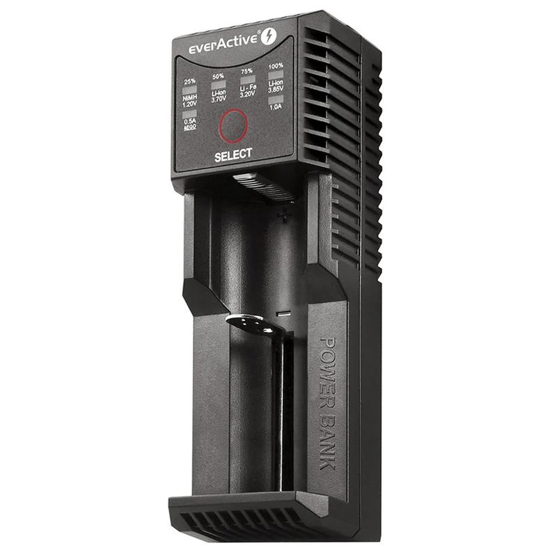 Cargador de batería universal USB-C EverActive UC-100C con función de banco de energía para baterías cilíndricas de iones de litio y Ni-MH.