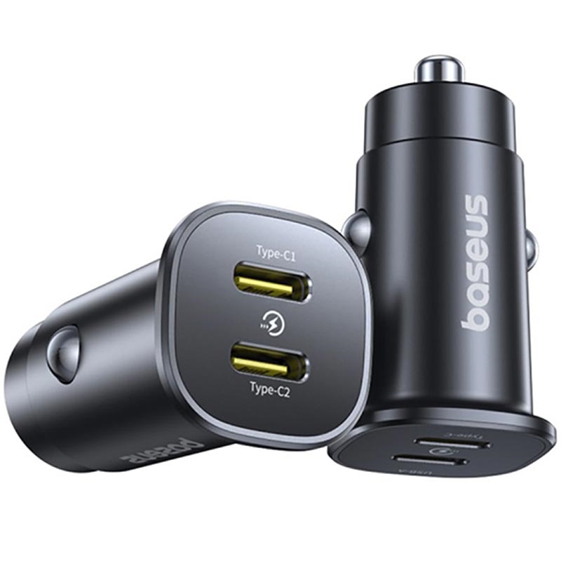 Cargador de coche Baseus GoTrip 30W Dual USB-C - Adaptador de carga rápida para teléfonos y tabletas.