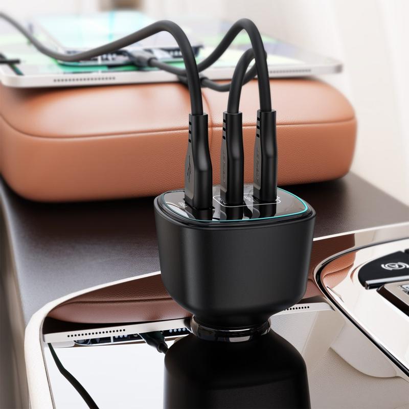 Cargador de coche Acefast B18 200W - Adaptador de mechero doble USB-C + USB-A de carga rápida.
